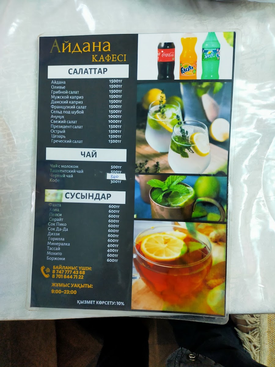 Whether you're looking for a quiet space to reflect, a delicious meal to savor, or simply a friendly place to gather with friends, Cafe Aydana in Turkistan is a perfect choice. Come for the delicious home-cooked meals, stay for the warm atmosphere, and leave with your heart—and stomach—filled.
